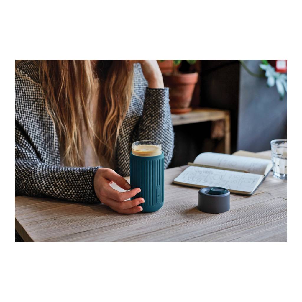 This 340ml travel cup is made from hand-blown borosilicate glass, making it both durable and lightweight. Its taste-neutral material ensures your drinks remain pure, while the fully leak-proof design provides confidence on the go. The lockable lid opens and closes easily with one hand, and a non-slip, protective silicone sleeve offers a comfortable and secure grip. Designed to fit standard bike bottle cages and car cup holders, it’s as practical as it is stylish. All parts are BPA-free, dishwasher safe, and the lid disassembles effortlessly for thorough cleaning.