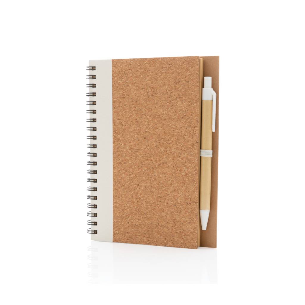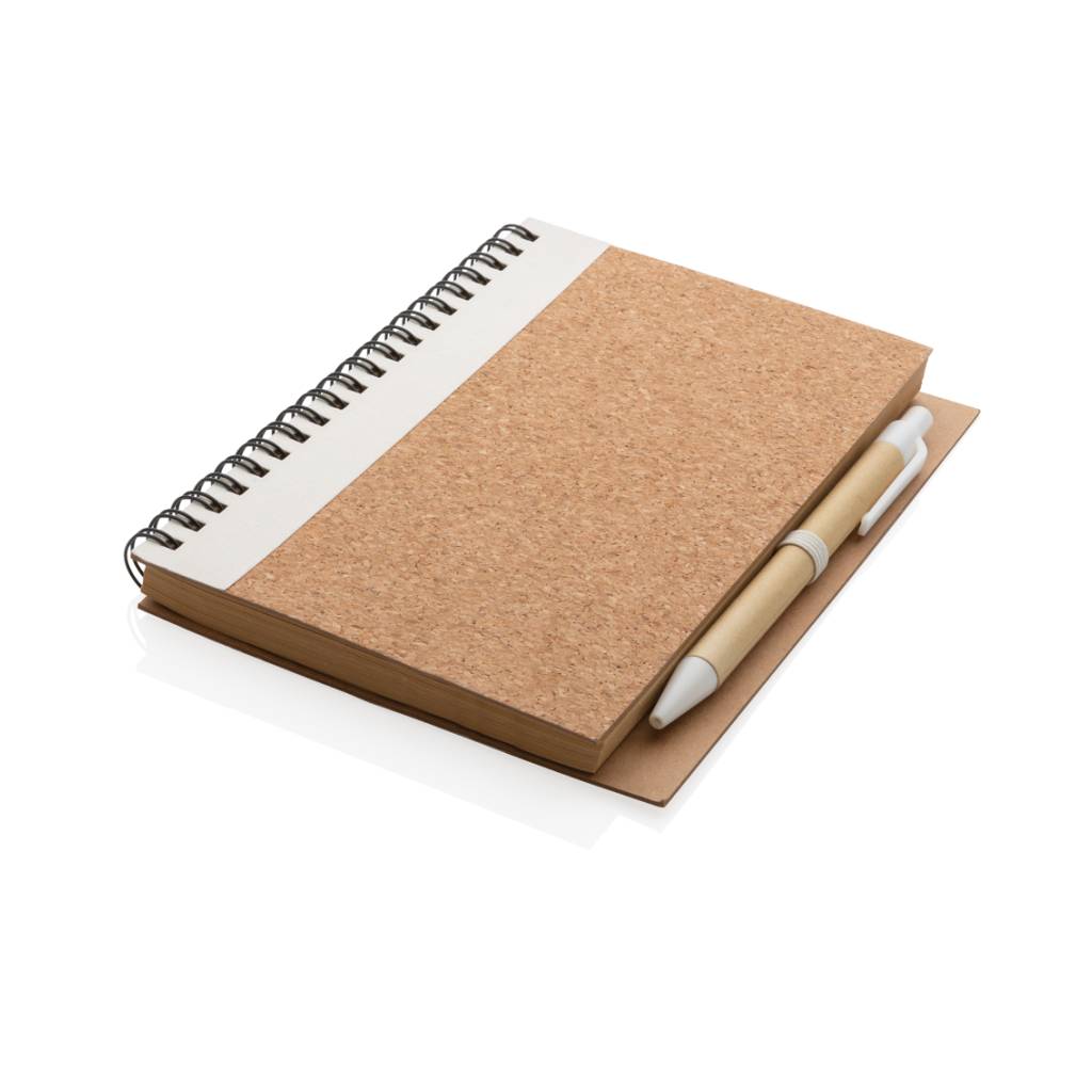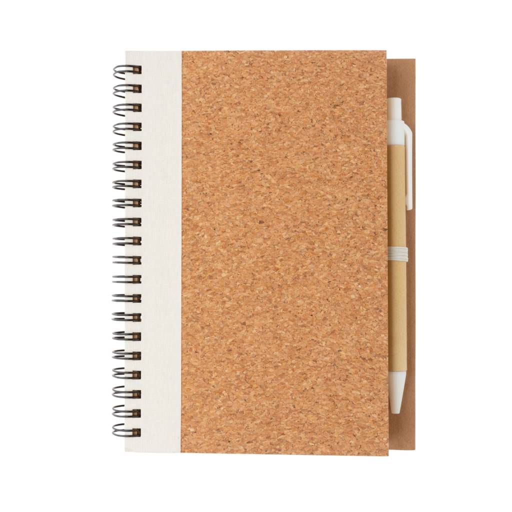 Keep track of your thoughts, notes, plans, to-do’s and more with this cork spiral notebook with pen. The notebook features lined 70 gr cream coloured recycled paper with 70 sheets / 140 pages. The notebook has a colour matching kraft barrel pen. The writing length of the pen is 600m with blue German Dokumental ink.