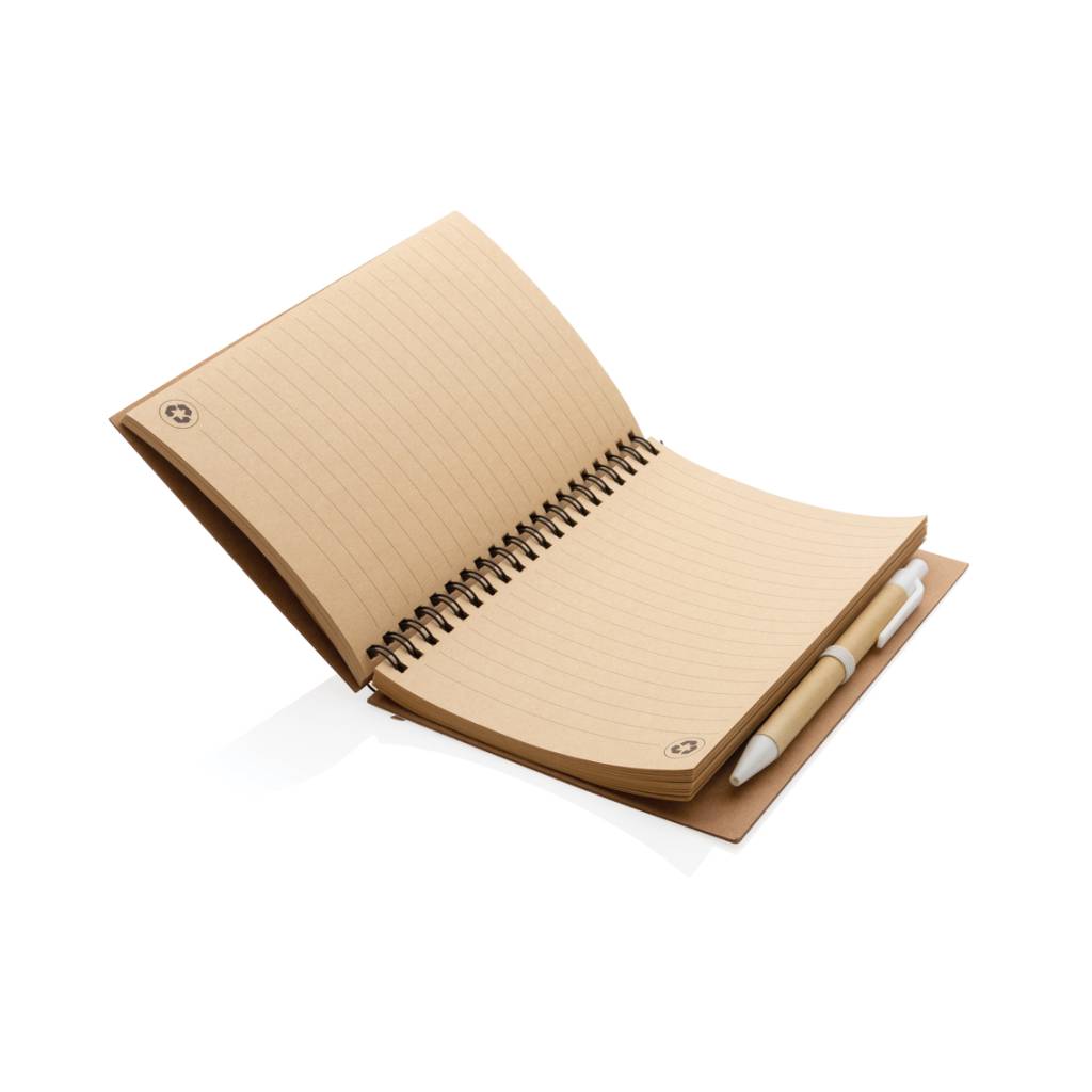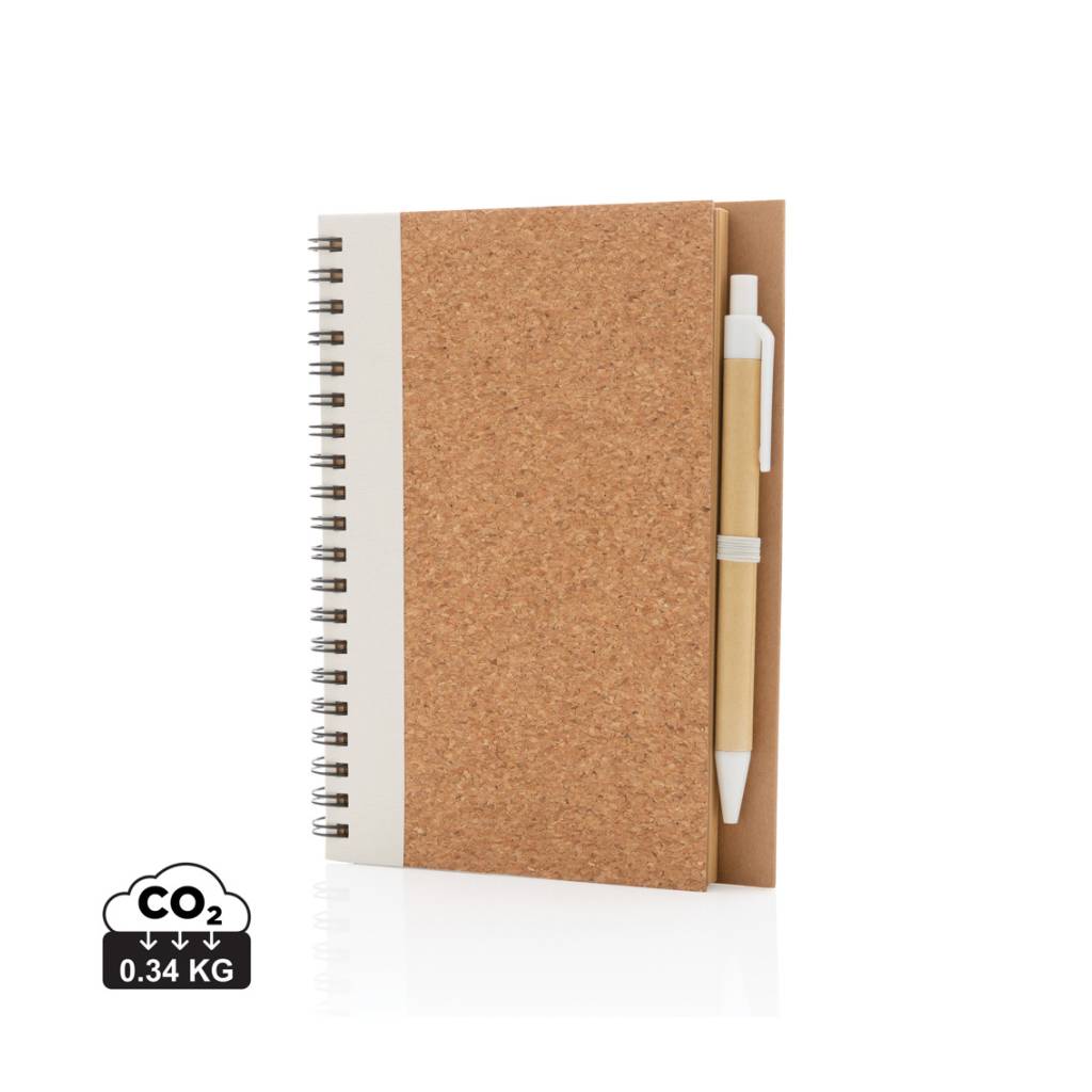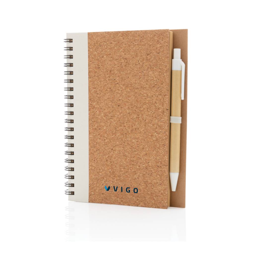 Keep track of your thoughts, notes, plans, to-do’s and more with this cork spiral notebook with pen. The notebook features lined 70 gr cream coloured recycled paper with 70 sheets / 140 pages. The notebook has a colour matching kraft barrel pen. The writing length of the pen is 600m with blue German Dokumental ink.