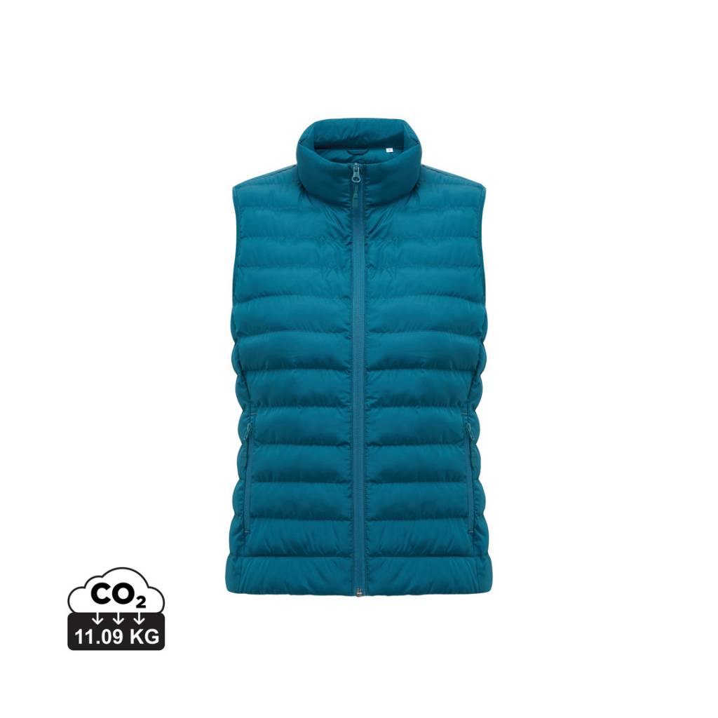 Women’s medium fit bodywarmer made from 100% post-consumer recycled polyester. The bodywarmer is fully quilted with 100% recycled polyester pearl filling. It has a reversed zipper at the front and practical zip pockets in the side panel seams. All zippers have extra zip pullers in matching colour for a refined look. The armholes have elastic binding and all seams at the inside are clean finished with recycled binding. Fluorine/PFAS free water repellent impregnation. The use of genuine recycled fabric materials and environmental impact claims are guaranteed, by using the AWARE™ disruptive physical tracer and blockchain technology. By scanning the QR code, you will gain access to a dedicated digital passport. 2% of proceeds of each sold product will be donated to Water.org. This product is OEKO-TEX® STANDARD 100 certified. The Meru bodywarmer is also available in men fit.
