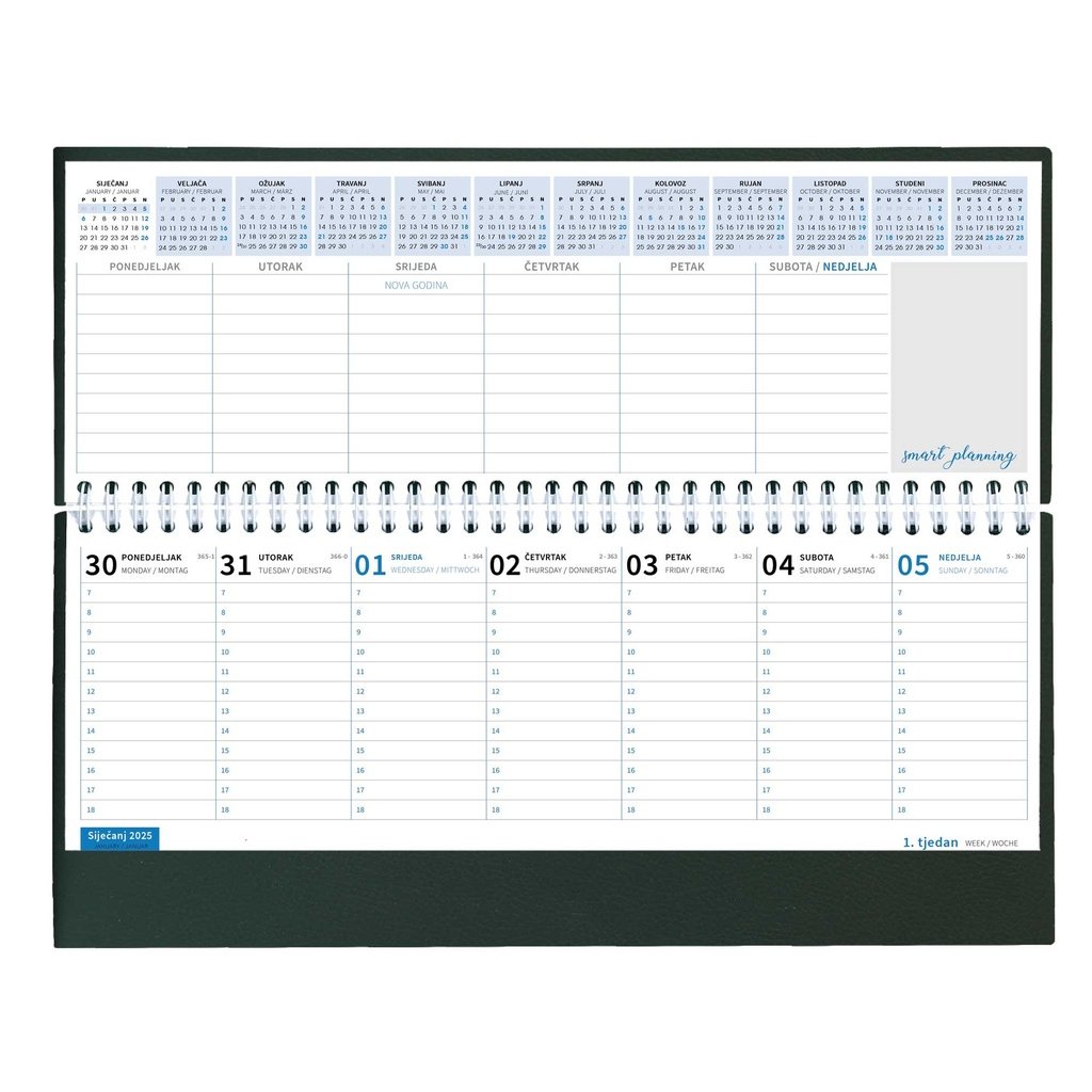 Planer STOLNI TOKIO s godinom CRNI, spiralni, dim:30x14,5cm, 128 str., P/50