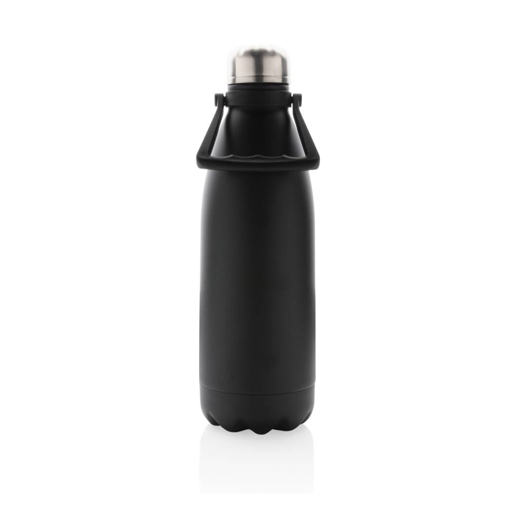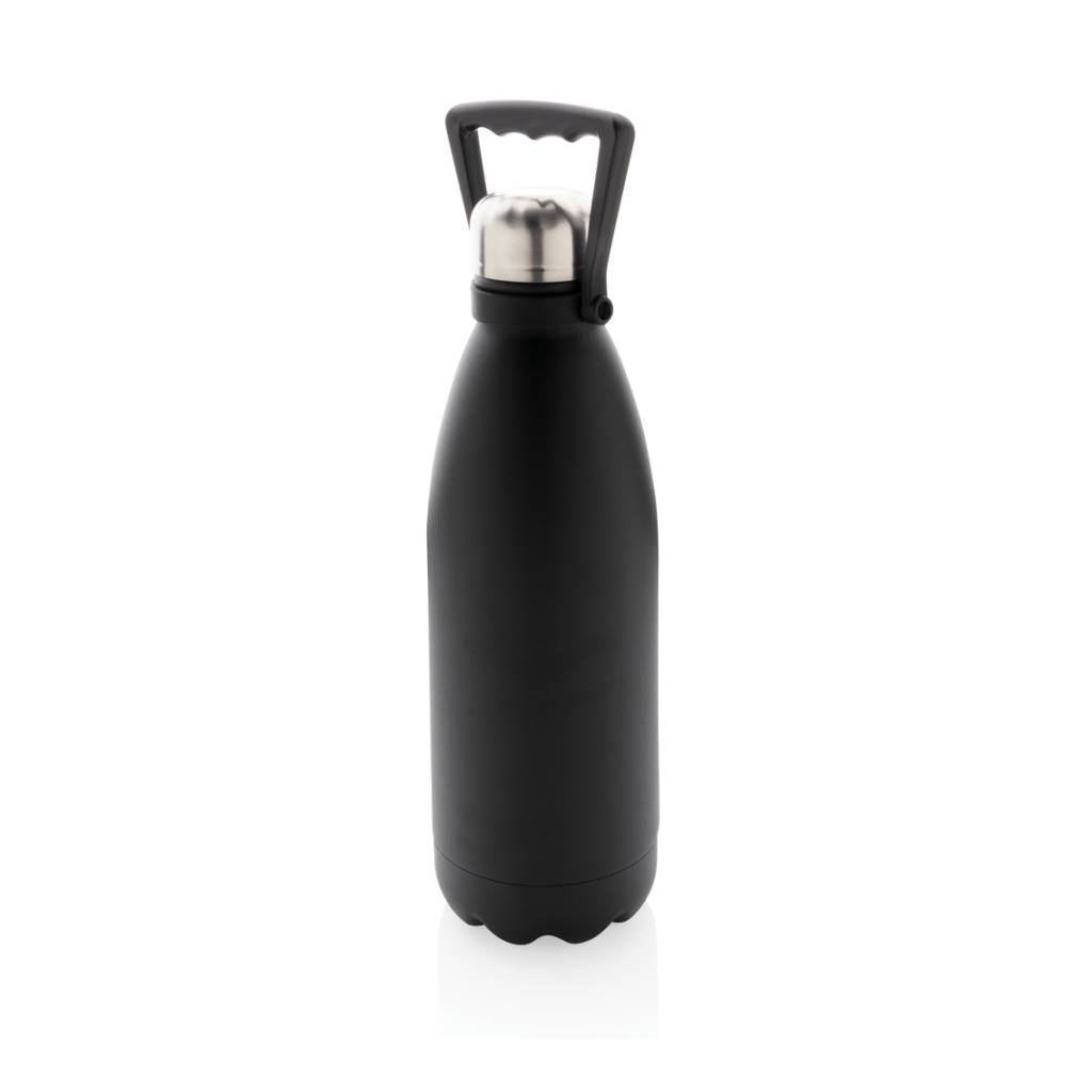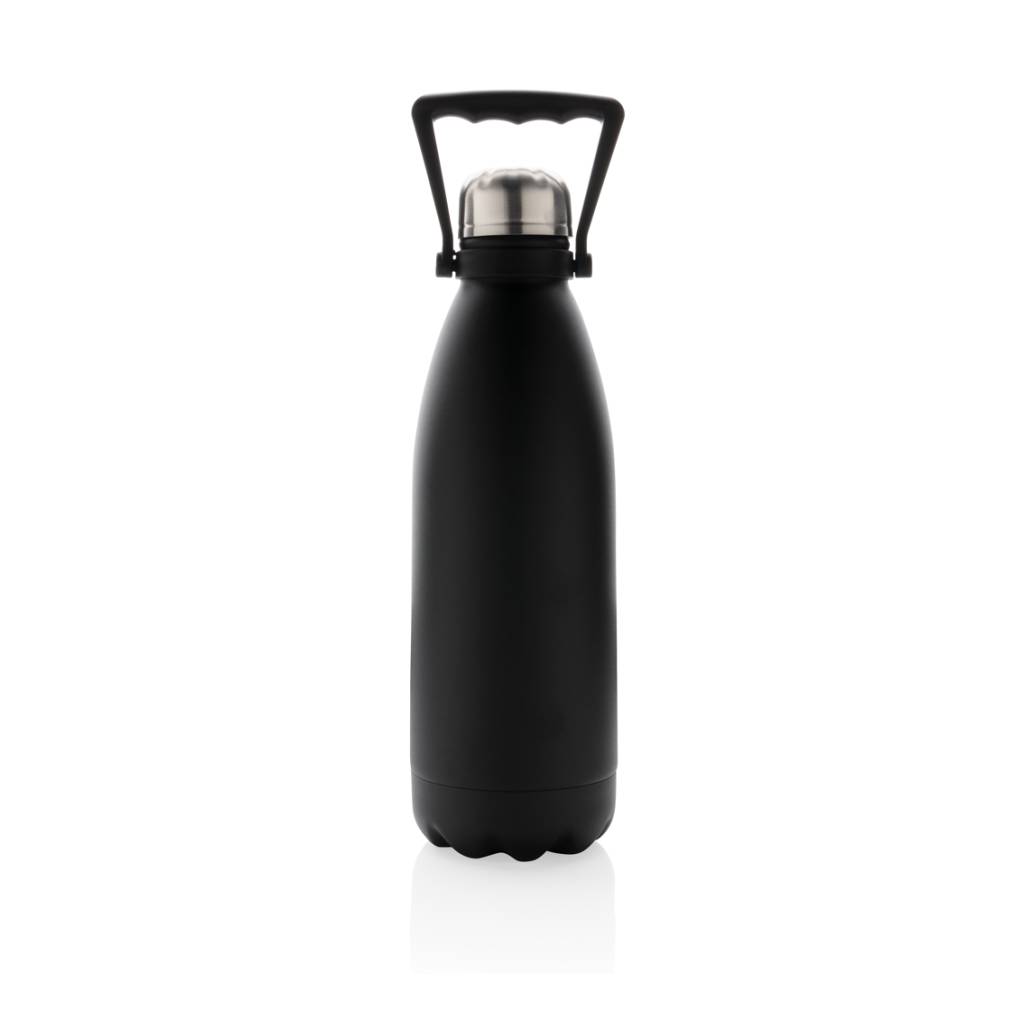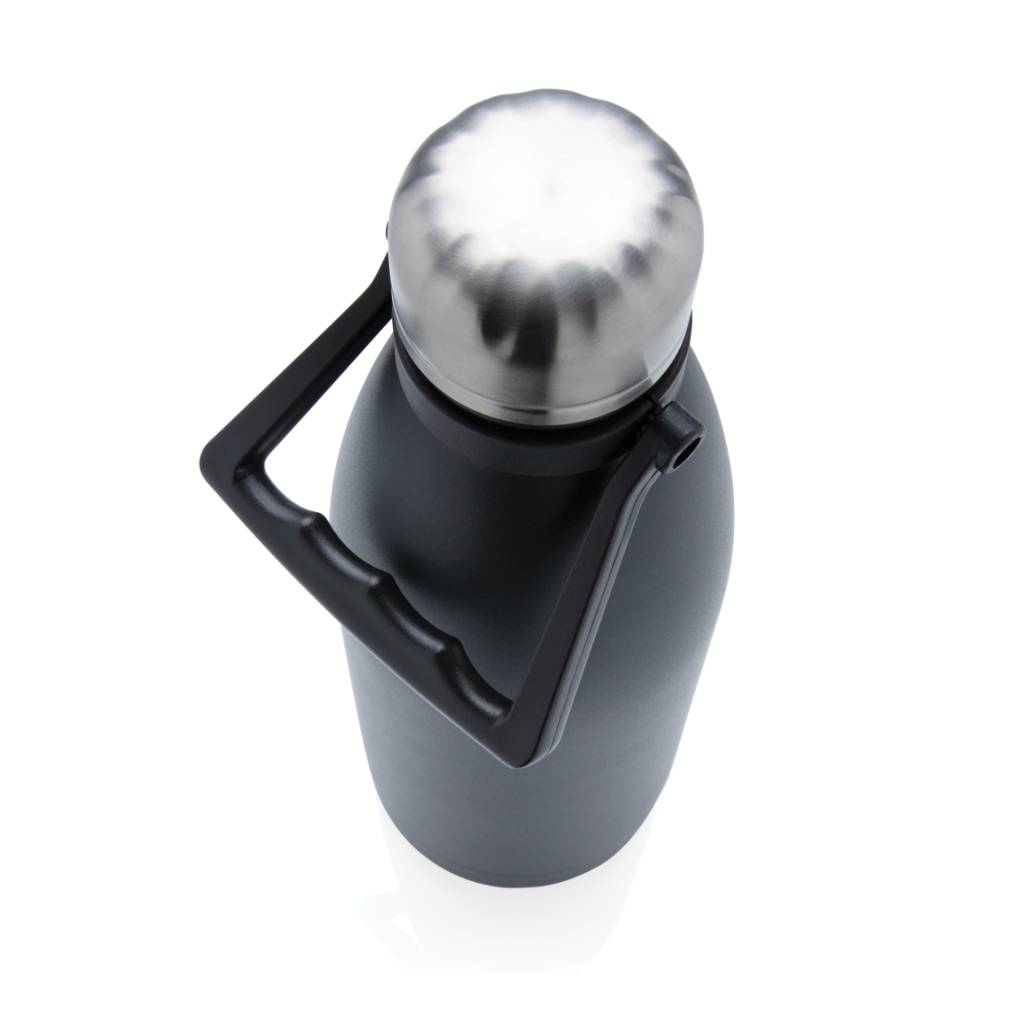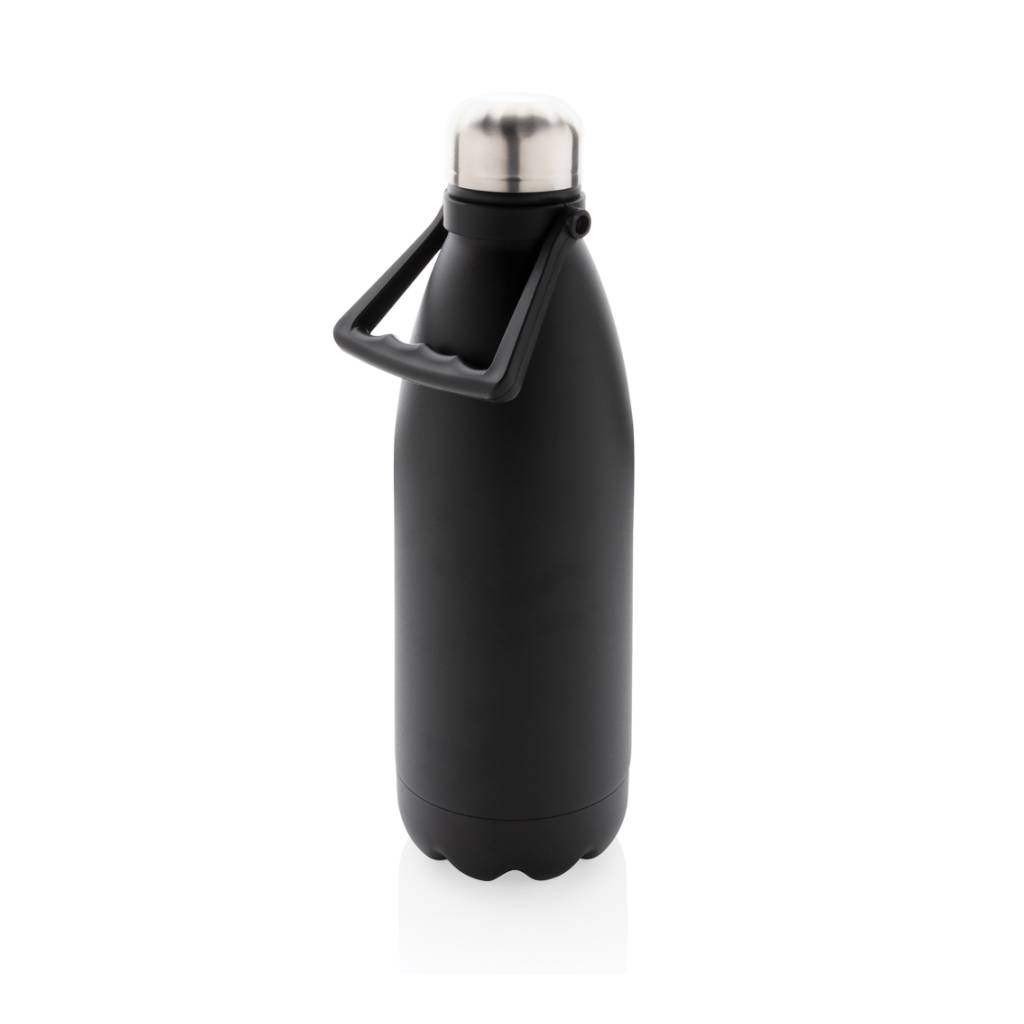Take your favourite drinks everywhere in this large double wall stainless steel bottle. With its large capacity of 1.5 litres, you are assured to have plenty to drink and the bottle keeps your beverages hot for up to 5 hours or cold for up to 15 hours. The bottle has a beautiful powder coated finish and a convenient handle for easy carrying. Made with RCS (Recycled Claim Standard) certified recycled materials. RCS certification ensures a completely certified supply chain of the recycled materials. Total recycled content: 88% based on total item weight. Capacity 1500ml. BPA free. Including FSC®-certified kraft packaging.