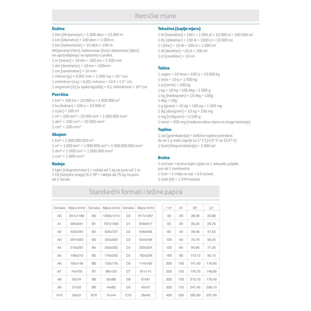 jezici: HRnvrsta papira: 80 g/m2 listovintisak: dvije boje