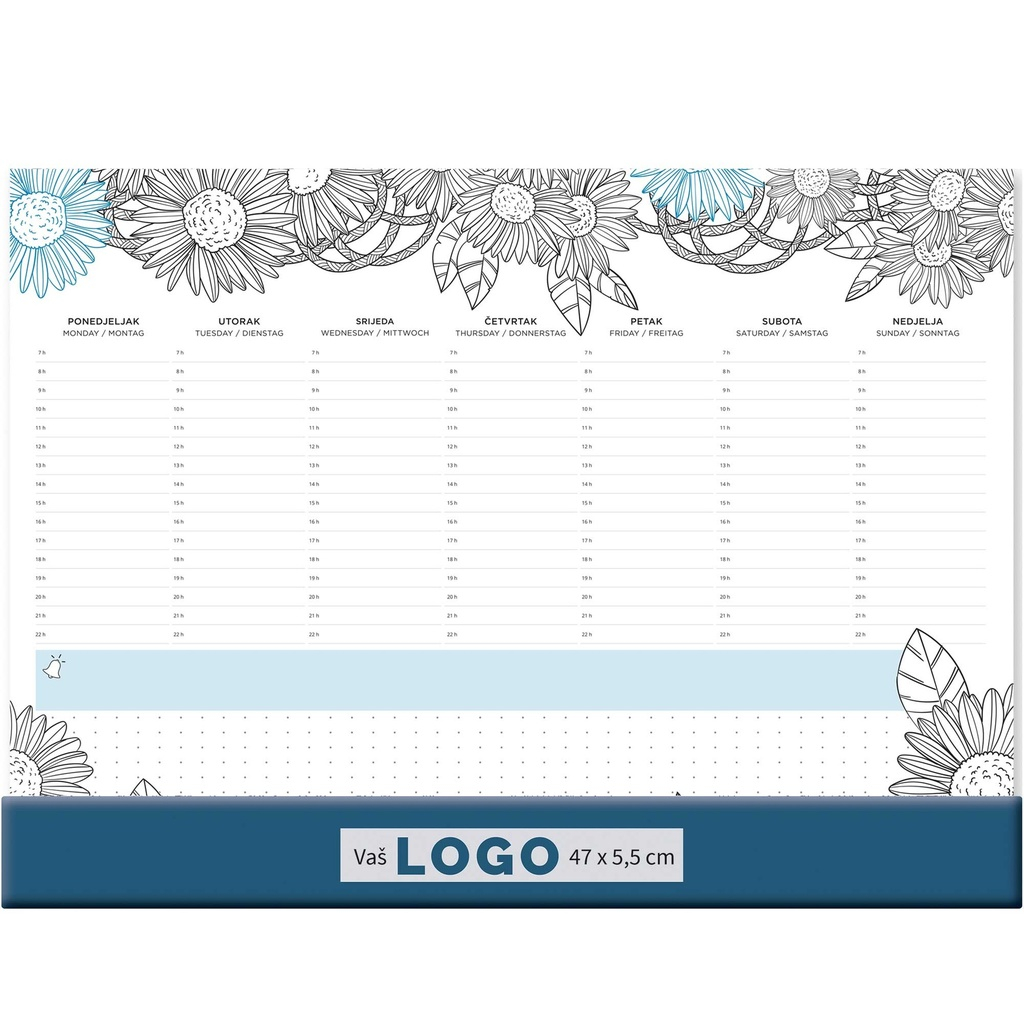opseg: 96 stranandimenzija: 47 x 34 cm nprostor za dotisak: 5,5 x 47 cmnuz svaku mapu dolazi i ravnalo s kalendarom (karton, plastificirano)njezici: HR, GB, DEnvrsta papira: 80 g/m2 listovi, 300 g/m2 podloga nuvez: ljepljeno gore, PVC klapna dolje npakiranje: 20 kom