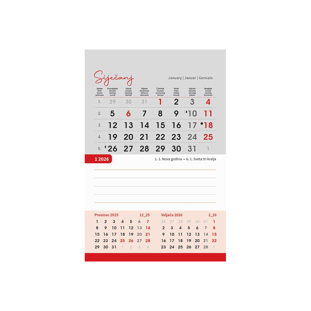 “TRODJELNI STOLNI VERTIKALNI” 12 list., dim: 10×19 cm, stolni kalendar, P/100