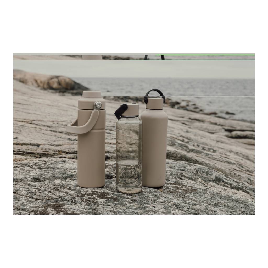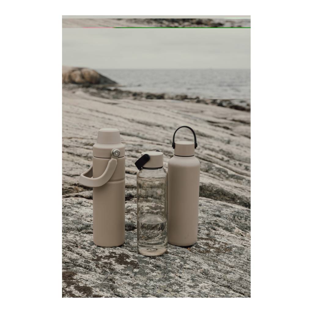 Crafted from BPA free RCS certified recycled PET, this water bottle is perfect for your daily hydration needs. Its modern and minimalistic design defines the popular Baltimore collection, making it both practical and visually appealing. The PU handle together with the lid in stainless steel adds a touch of refinement. Not dishwasher or microwave safe, only handwash. Cold drinks only. Certified by RCS (Recycled Claim Standard), RCS certification guarantees that the entire supply chain of recycled materials is certified. The total recycled content is based on the overall product weight. This product contains 61% RCS certified recycled PET.