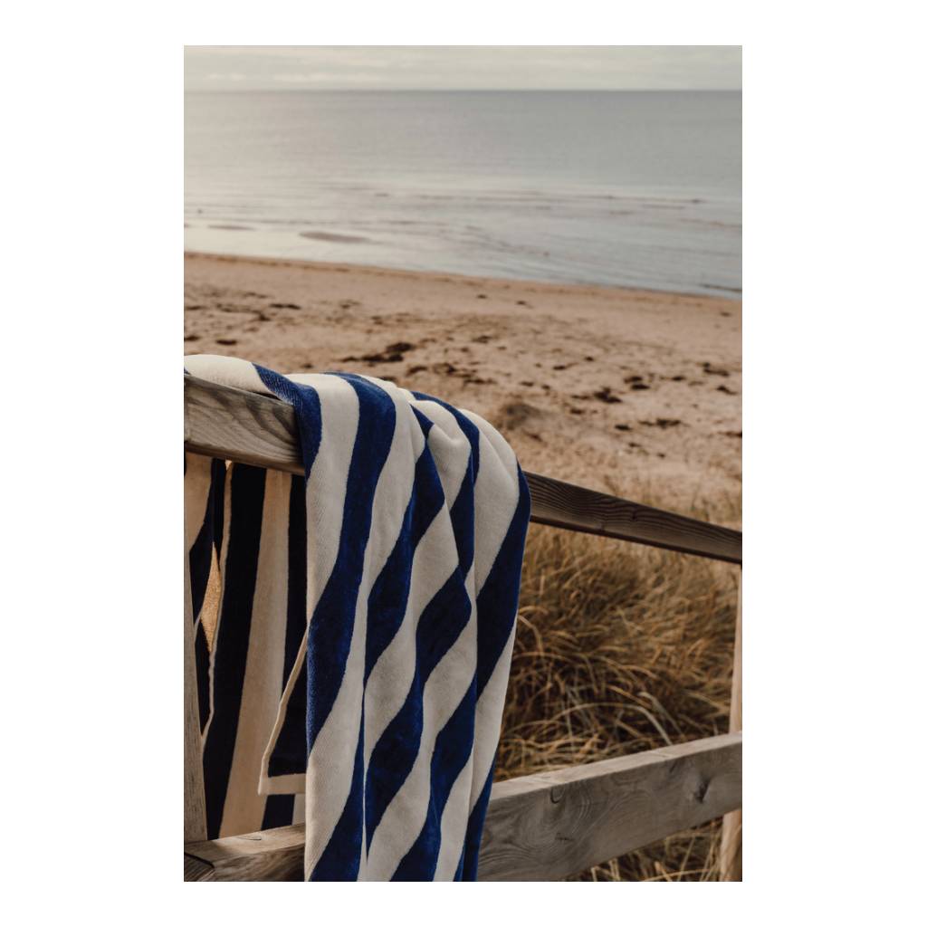 This beach towel is the ideal companion for sunny days at the beach, on the boat or by the pool. Woven in a classic two-coloured striped pattern and made from GRS certified recycled cotton, it offers a very soft handfeel and lasting comfort. With its heavy 450 GSM weight, the towel combines excellent absorbency with a premium quality. Size 80x160cm. Responsibly made in Portugal. Certified by GRS (Global Recycled Standard), GRS certification guarantees that the entire supply chain of the recycled materials is certified. The total recycled content is based on the overall product weight. This product contains 50% GRS certified recycled cotton.