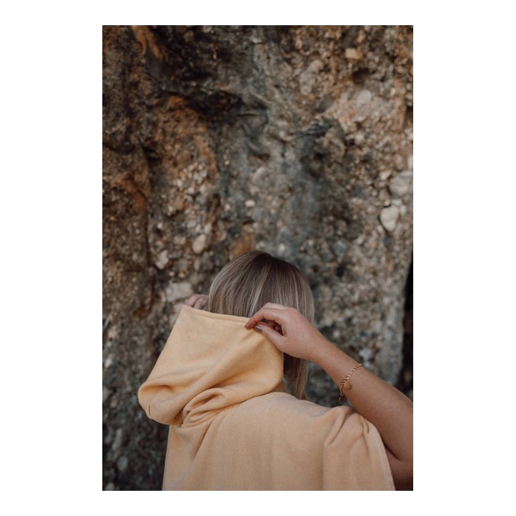Hammam poncho designed with two different types of textures, one side in terry and the other side plain weave. The poncho is a practical and versatile garment, perfect for the beach or by the pool. It has an excellent absorbency and dries up quickly. The poncho is crafted from 75% cotton and 25% polyester and has a thickness of 360 gsm. Measurements: 100x95cm. OEKO-TEX® STANDARD 100. 09.HIN.68091. Hohenstein HTTI.