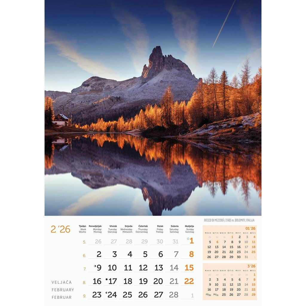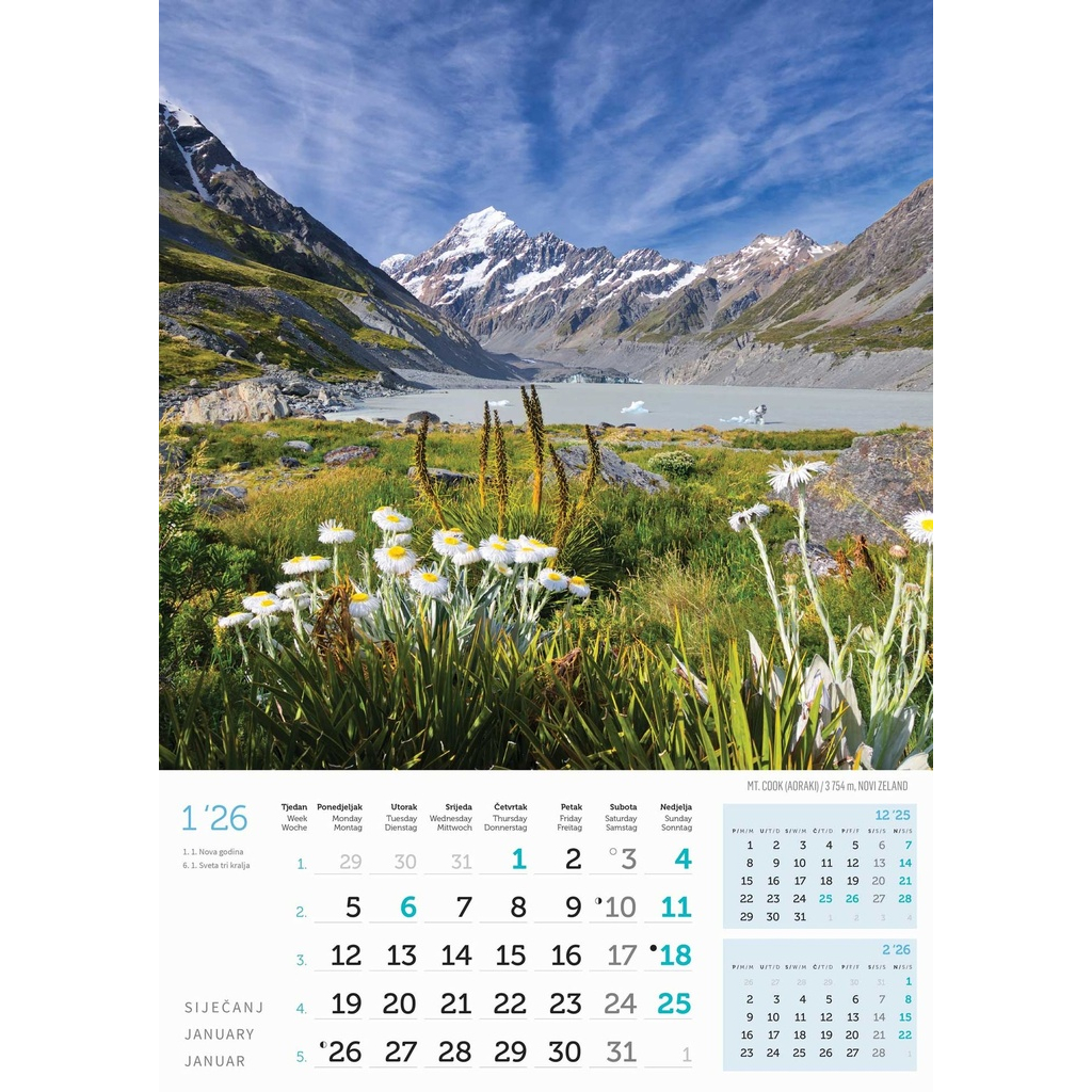 “VRHOVI SVIJETA” 13 list., dim: 30,5×50 cm, PVC vrećica, P/50, color kalendar