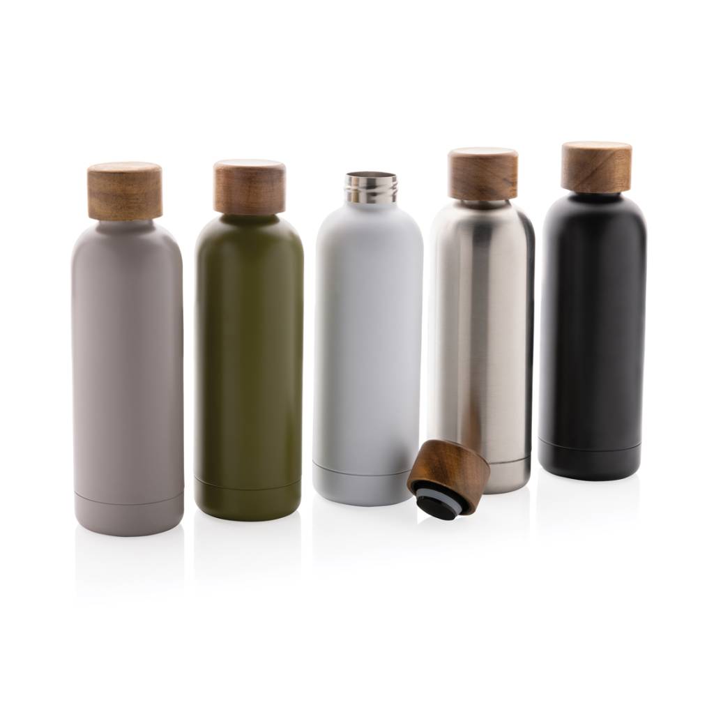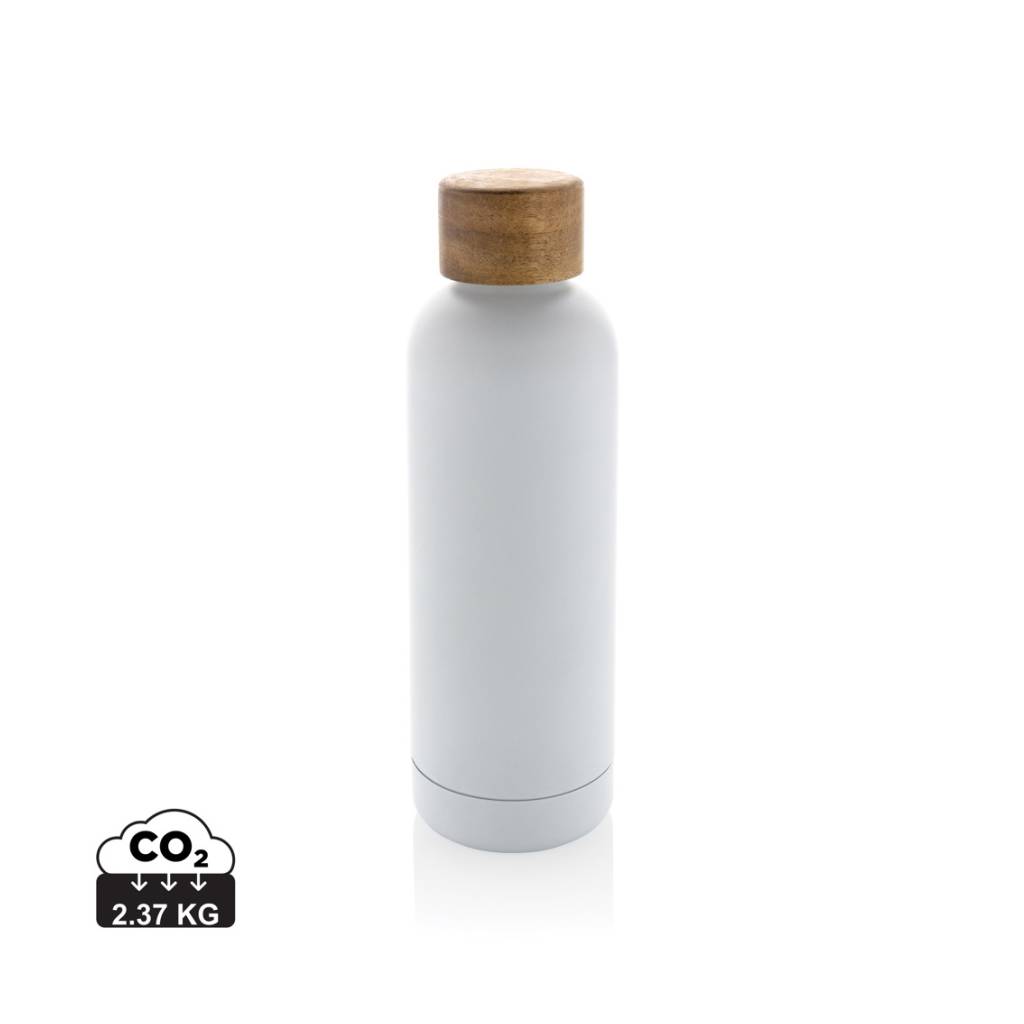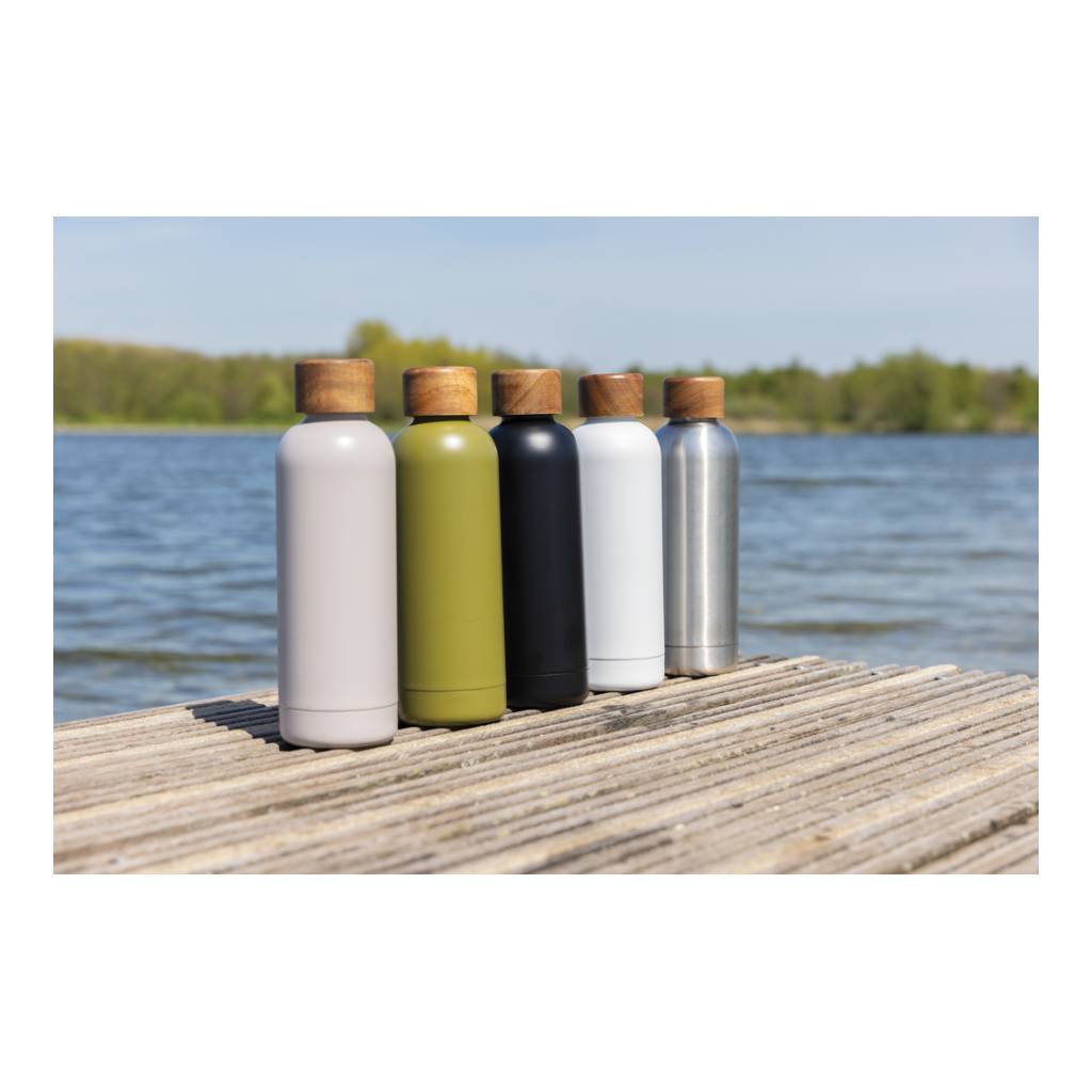 Perfect for all-day hydration, the Wood RCS stainless steel double wall vacuum bottle keeps you refreshed throughout the day. Made of durable recycled stainless steel with acacia wooden lid. Keeps your drink warm for up to 5 hours or cold for up to 15 hours. Made with RCS (Recycled Claim Standard) certified recycled materials. RCS certification ensures a completely certified supply chain of the recycled materials. Total recycled content: 88% based on total item weight. BPA free. Capacity 500ml. Including kraft packaging.