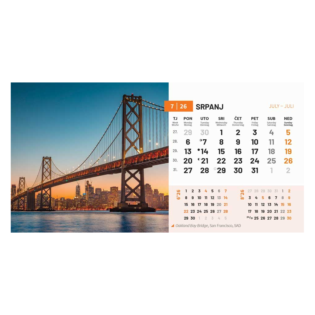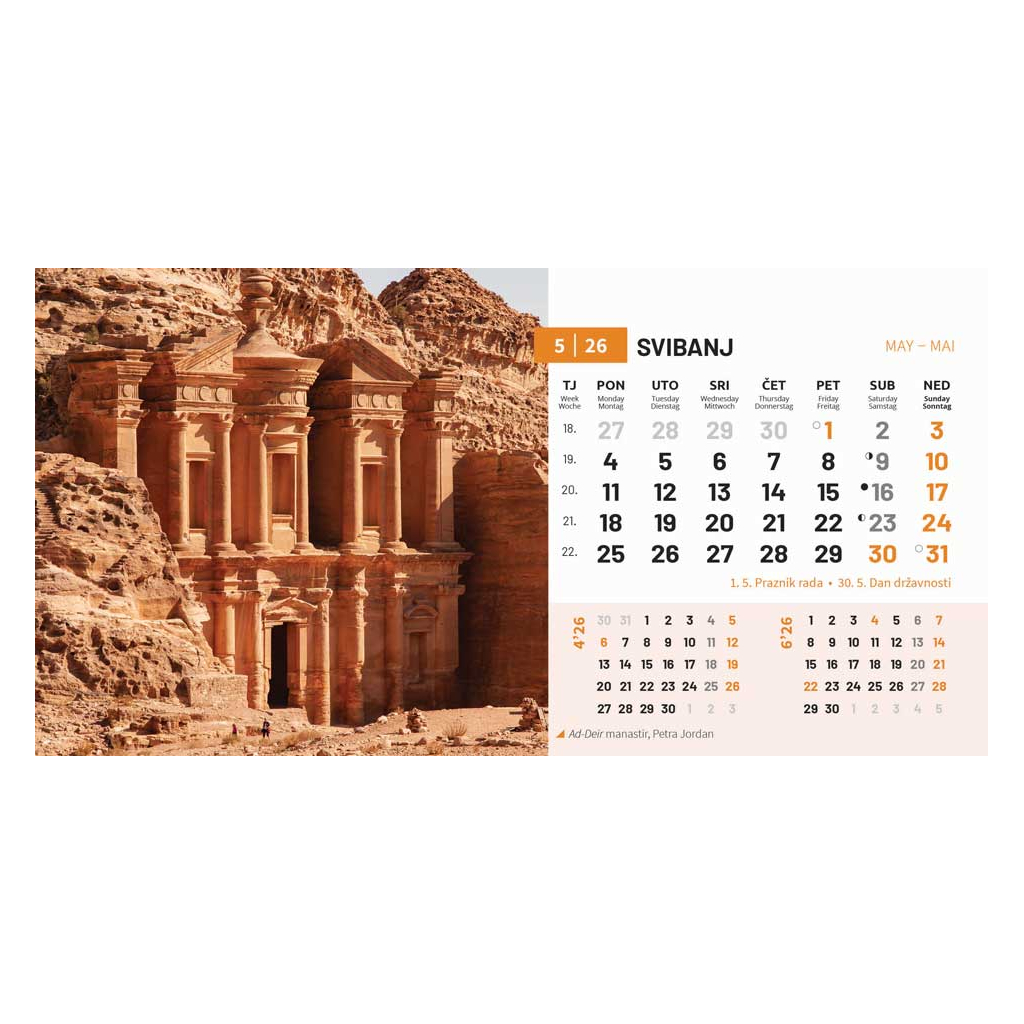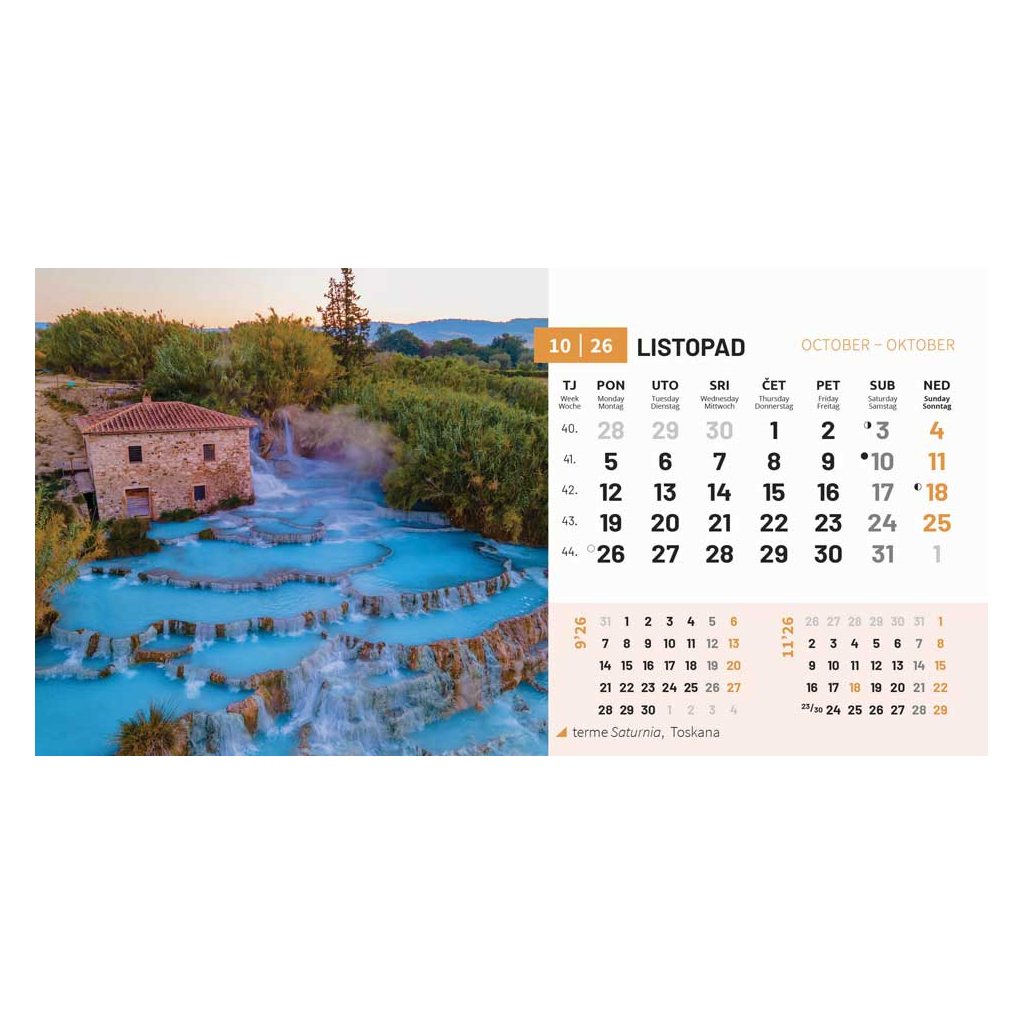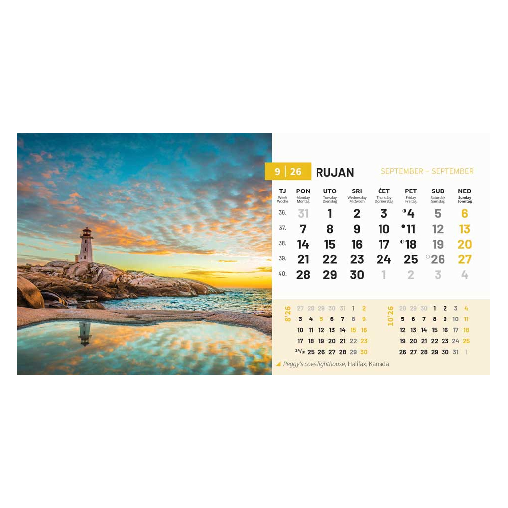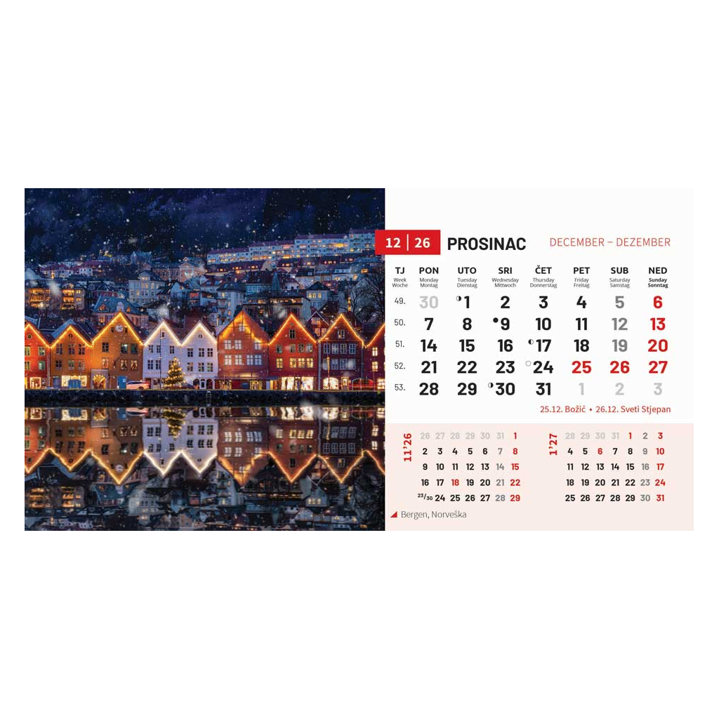 opseg: 13 listovandimenzija: 20,5 x 14,5 cmnprostor za dotisak: 20 x 4 cmnopis: tromjesečni kalendarij, kovertantisak: obostrani 4/4, na poleđini svakog lista se nalazi kalendar za cijelu godinunjezici: HR. GB, DEnvrsta papira: KD 135 g/m2 listovi, HIGH POINT 295 g /m2 podloga nuvez: spiralninpakiranje: 1 kom