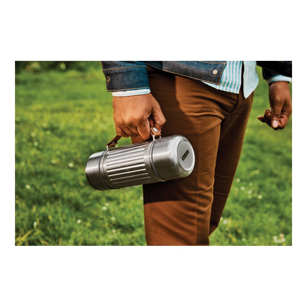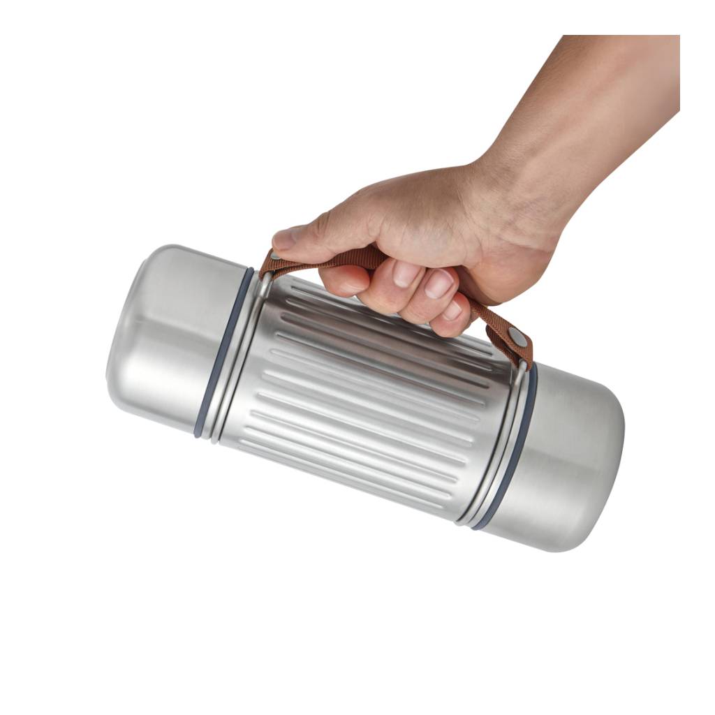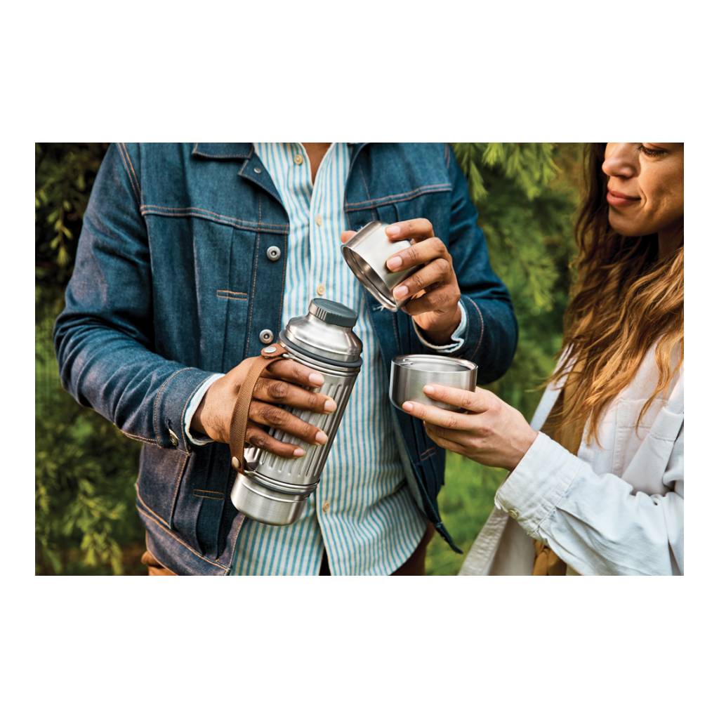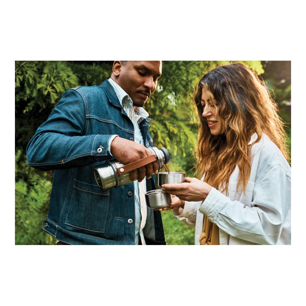This 1L vacuum insulated stainless steel flask is built for every kind of adventure—whether you’re heading out on the trail, relaxing at the beach, or tackling the slopes. With its reinforced structure and durable design, it keeps drinks piping hot or ice cold for up to 24 hours. Completely leak proof, it features a steel cap lid with an easy pouring mechanism and two double-walled stainless steel cups for sharing. The wide-based cups offer extra stability on uneven ground, while a thick nylon strap makes it easy to carry or pour. A silicone gasket prevents drips when the cups are stored, and the flask is dishwasher-safe once the strap is removed.