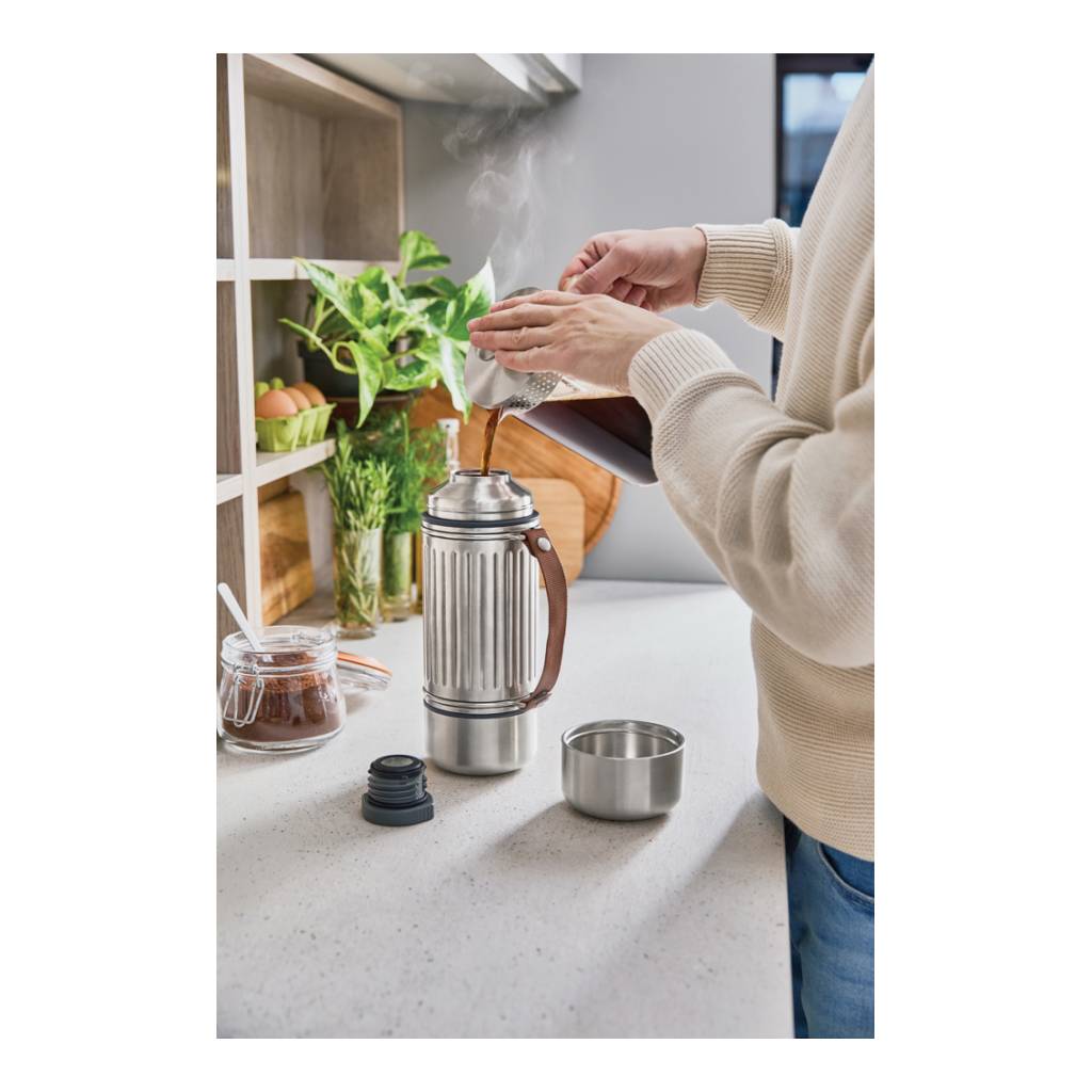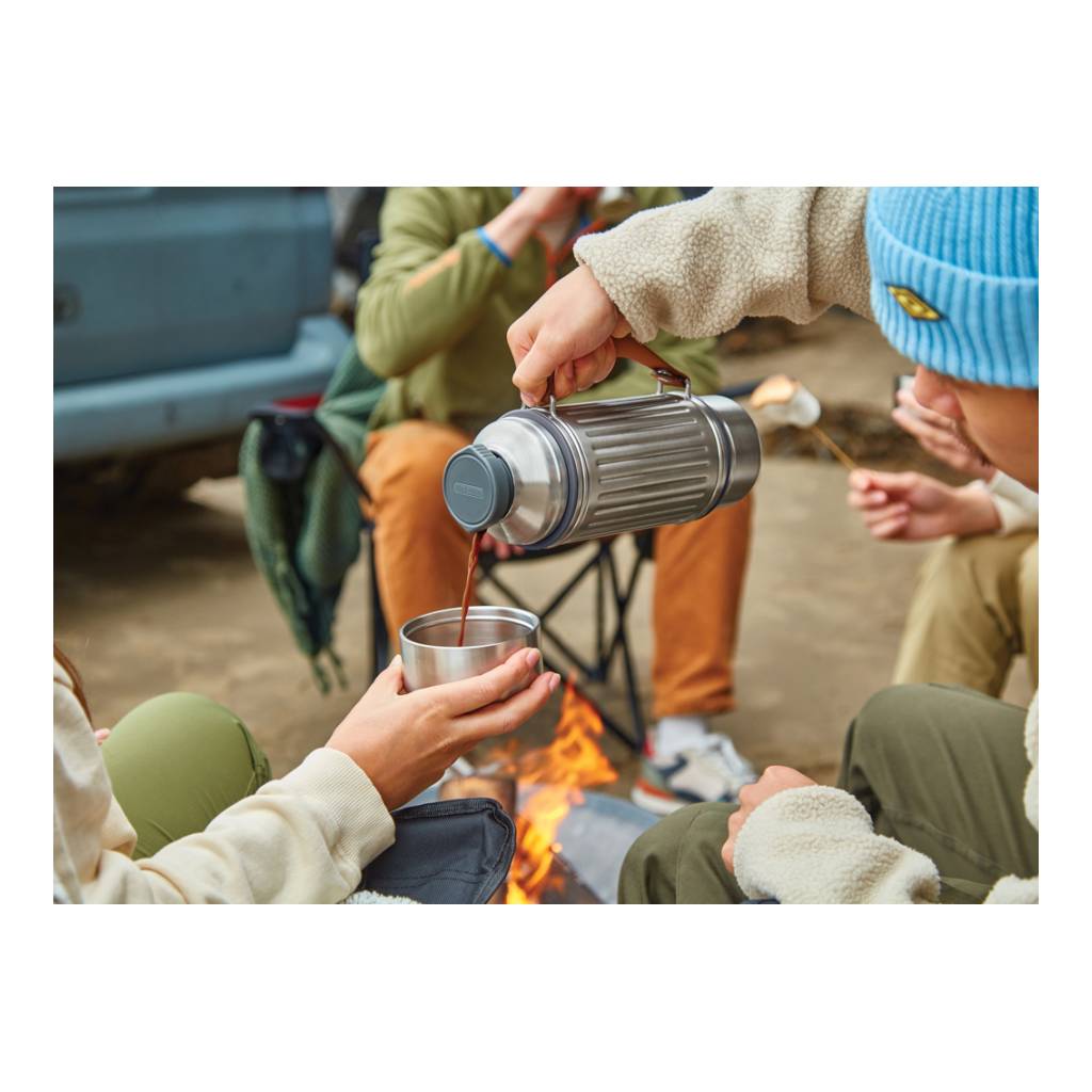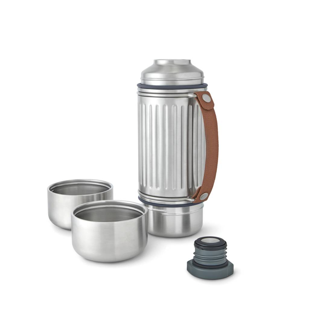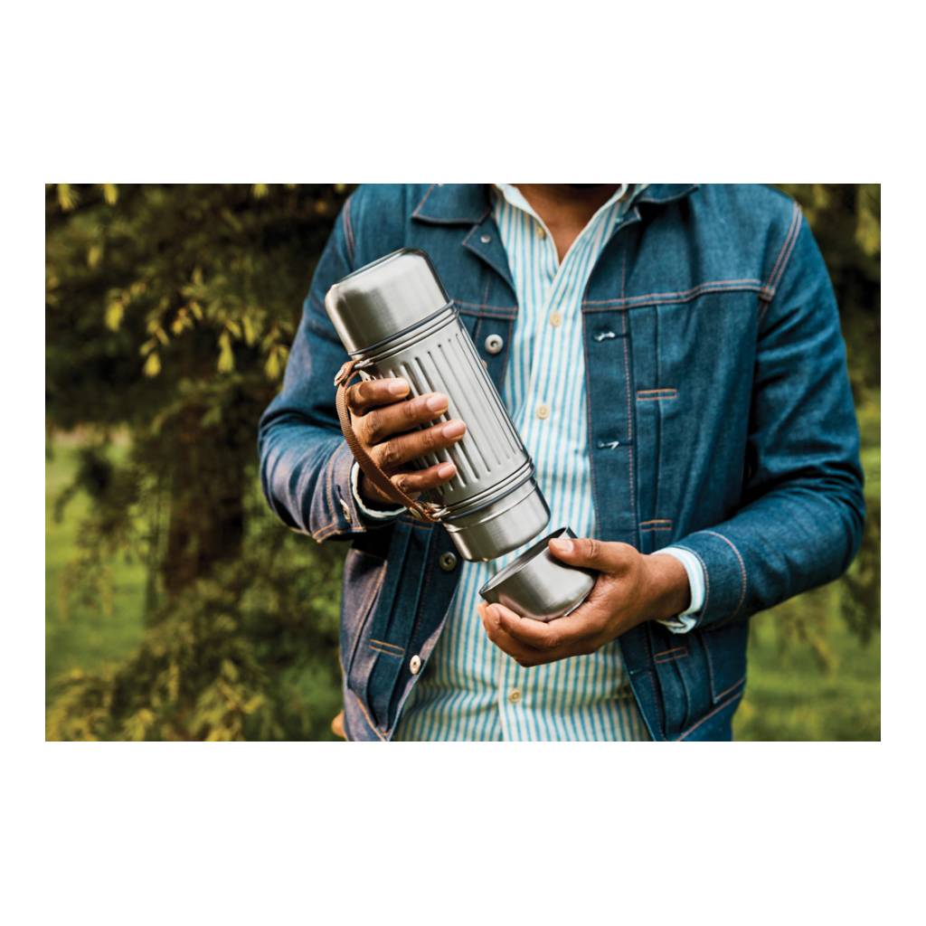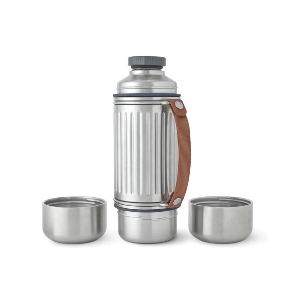 This 1L vacuum insulated stainless steel flask is built for every kind of adventure—whether you’re heading out on the trail, relaxing at the beach, or tackling the slopes. With its reinforced structure and durable design, it keeps drinks piping hot or ice cold for up to 24 hours. Completely leak proof, it features a steel cap lid with an easy pouring mechanism and two double-walled stainless steel cups for sharing. The wide-based cups offer extra stability on uneven ground, while a thick nylon strap makes it easy to carry or pour. A silicone gasket prevents drips when the cups are stored, and the flask is dishwasher-safe once the strap is removed.