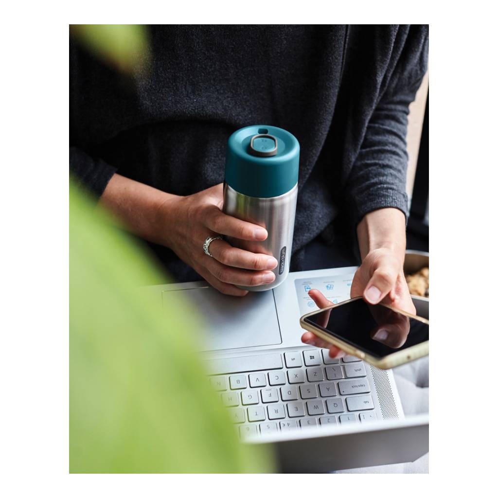 Savršena šalica u pokretu za ponijeti kavu i čaj sa sobom ili smanjiti količinu jednokratnih šalica za jednokratnu upotrebu tako da je date svom omiljenom baristi na punjenje. Održat će vaša pića vrućima 5 sati i užitak je piti iz njega. Gornji dio je 100% nepropustan, može se zaključati i lako rastaviti radi čišćenja. Ovo je besmislica, napravljena da traje, dizajnirana da funkcionira putna šalica koja će vam trajati cijeli život. 340 ml. Samo ručno pranje