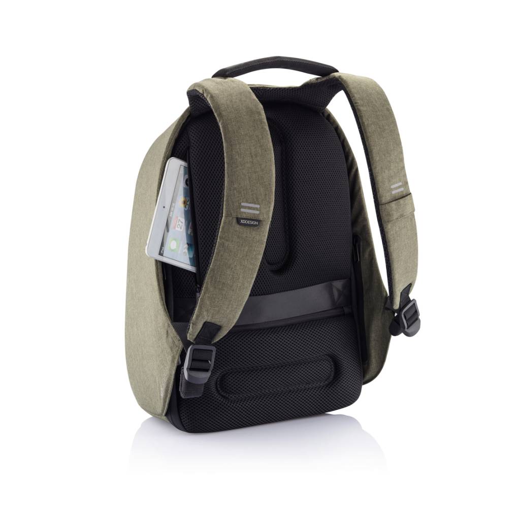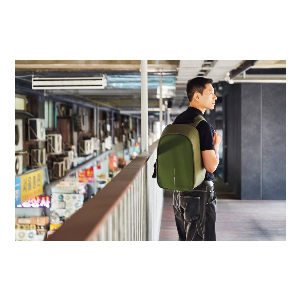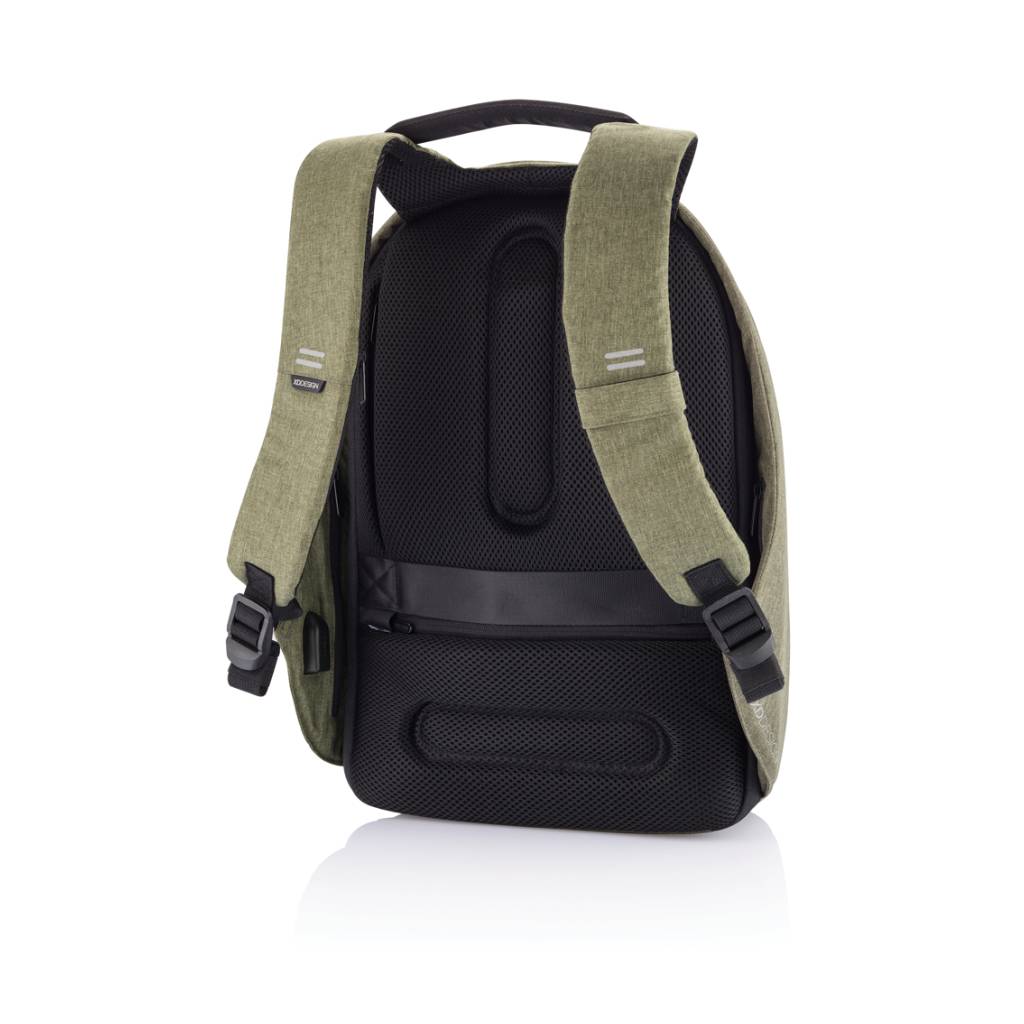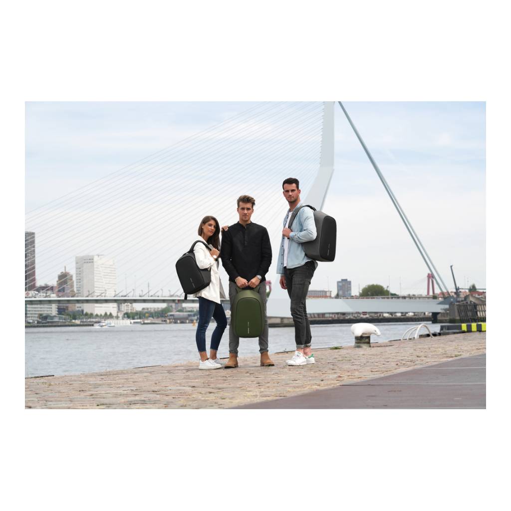 Linija Bobby Hero predstavlja novu eru u ruksacima protiv krađe, nudeći sigurnost, lakoću i organizaciju za vaša svakodnevna putovanja. Zaštita od posjekotina, diskretno zatvaranje patentnim zatvaračem i skriveni džepovi osiguravaju sigurnost vaših stvari tijekom putovanja na posao. Bobby Hero Regular opremljen je integriranim USB priključkom za punjenje, vodoodbojnom tkaninom, svjetlećim sigurnosnim trakama i remenom za prtljagu za dodatnu praktičnost. Unutarnji podstavljeni pretinci služe za prijenosno računalo od 15,6 inča i tablet do 12,9 inča. Izrađena od R-pet tkanine s AWARE™ tracerom. Uz AWARE™, zajamčena je upotreba originalne reciklirane tkanine. 29% reciklirani sadržaj. Registrirani dizajn®