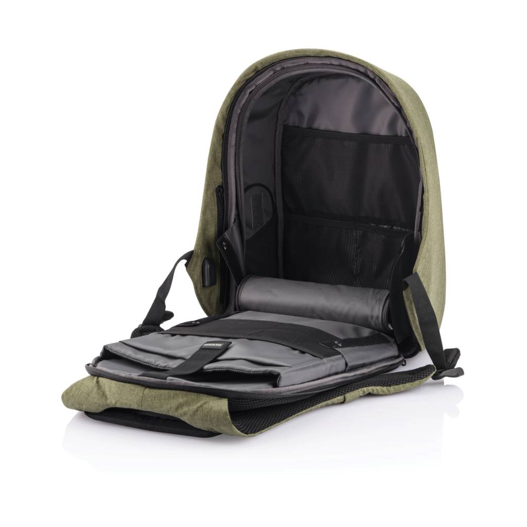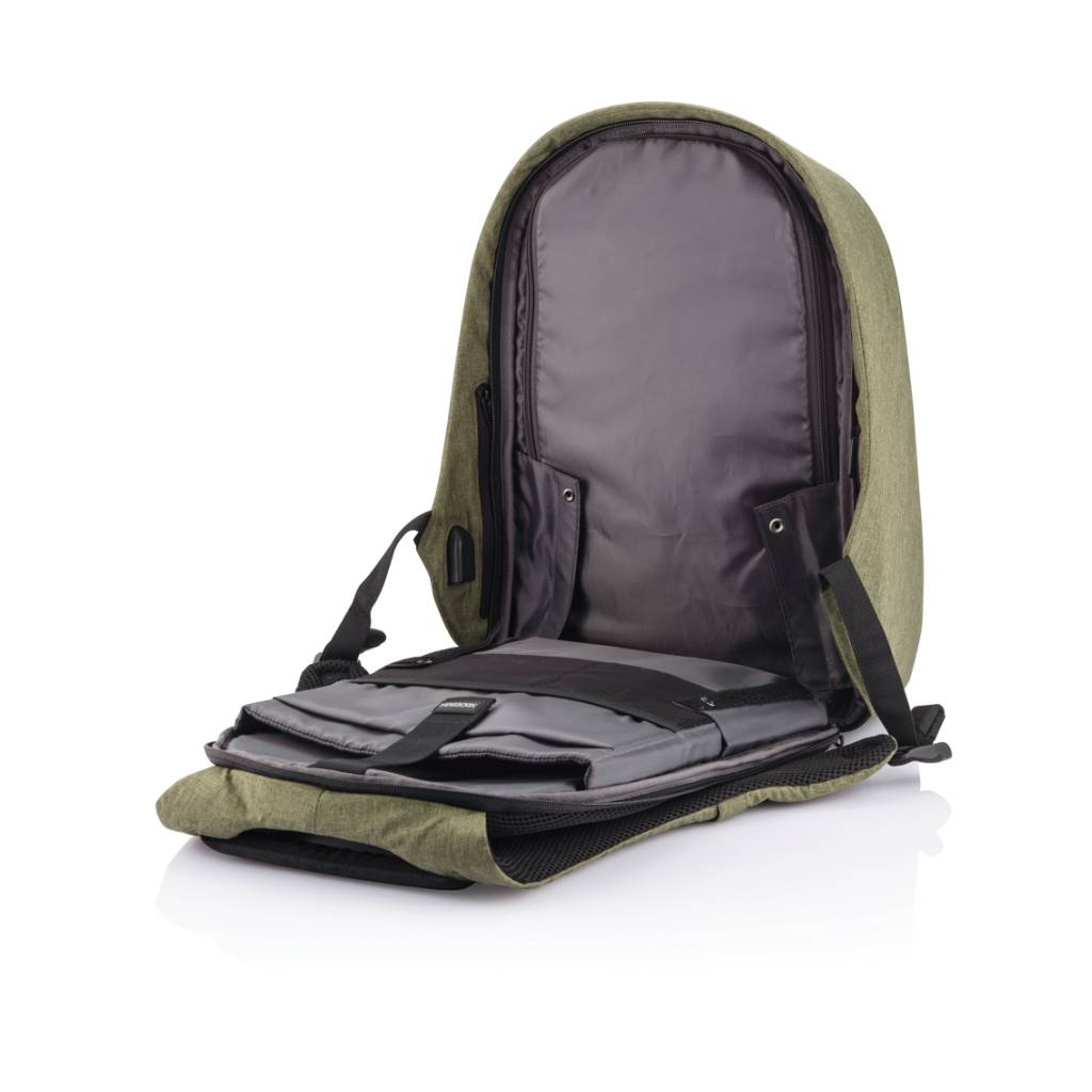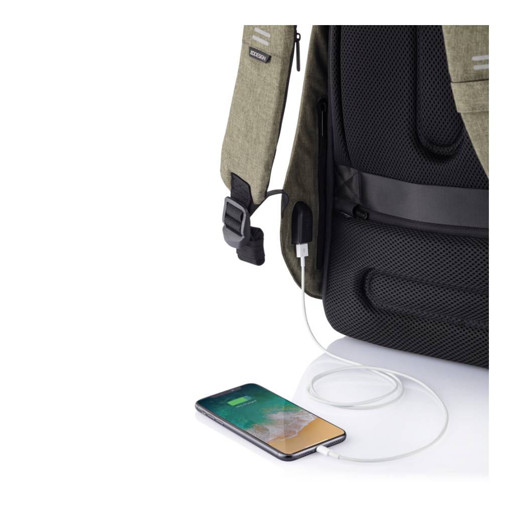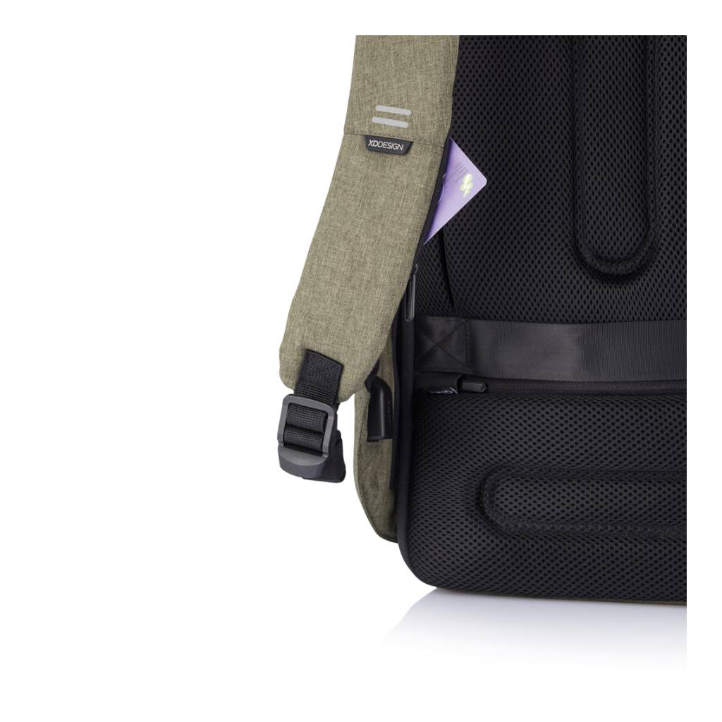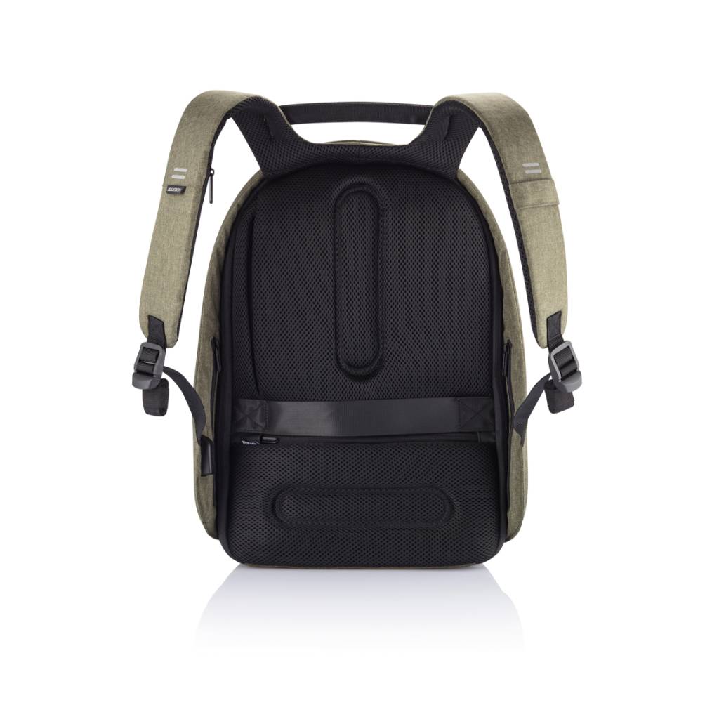 Linija Bobby Hero predstavlja novu eru u ruksacima protiv krađe, nudeći sigurnost, lakoću i organizaciju za vaša svakodnevna putovanja. Zaštita od posjekotina, diskretno zatvaranje patentnim zatvaračem i skriveni džepovi osiguravaju sigurnost vaših stvari tijekom putovanja na posao. Bobby Hero Regular opremljen je integriranim USB priključkom za punjenje, vodoodbojnom tkaninom, svjetlećim sigurnosnim trakama i remenom za prtljagu za dodatnu praktičnost. Unutarnji podstavljeni pretinci služe za prijenosno računalo od 15,6 inča i tablet do 12,9 inča. Izrađena od R-pet tkanine s AWARE™ tracerom. Uz AWARE™, zajamčena je upotreba originalne reciklirane tkanine. 29% reciklirani sadržaj. Registrirani dizajn®