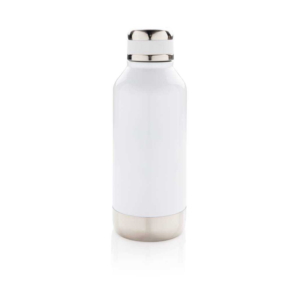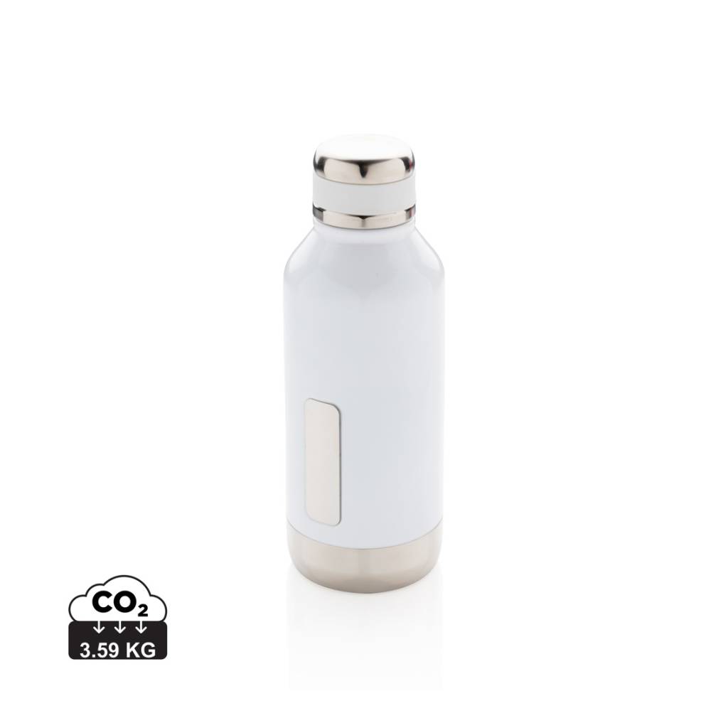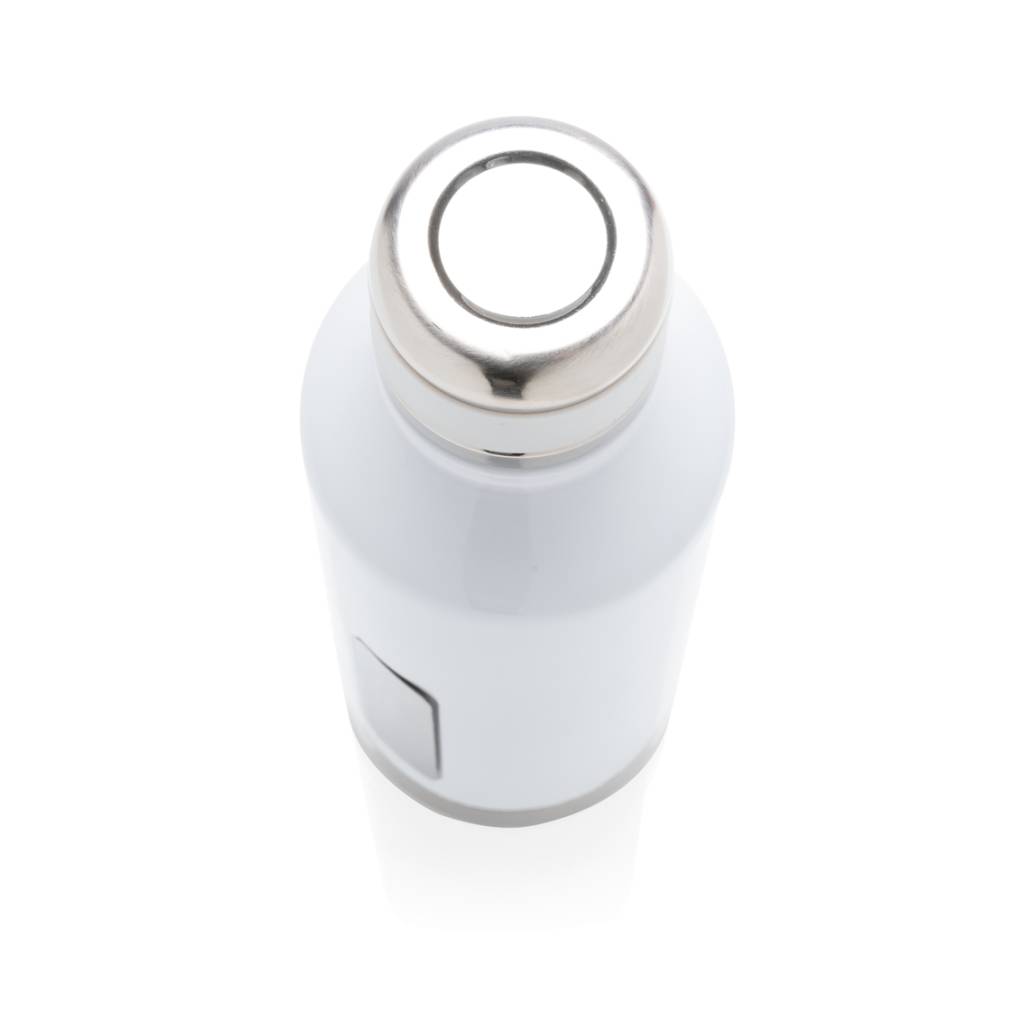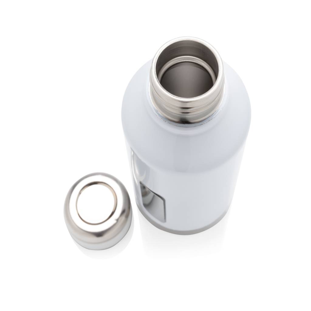 Nepropusna vakuumski izolirana boca s poklopcem koji se odvrće. S jedinstvenim položajem logotipa na prednjoj strani. Unutrašnjost od nehrđajućeg čelika 304 i vanjska strana od nehrđajućeg čelika 201 održava vaša pića vrućima 5 sati i hladnima 15 sati. Sadržaj: 500 ml.
